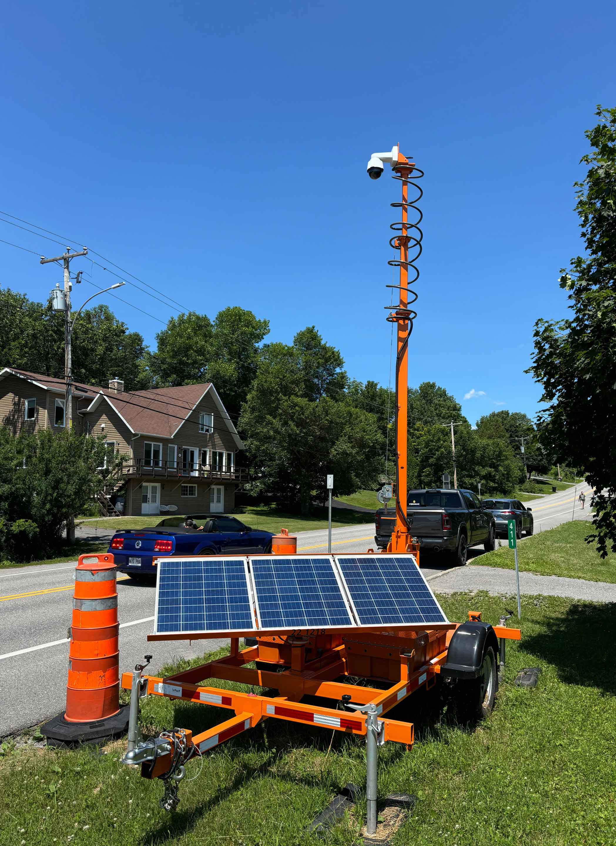 With its telescopic mast that can extend up to 9 metres (30 feet), our CT-2430 trailer-mounted camera is ideal for all your mobile video surveillance needs. Its robust design withstands the elements and provides stability and ease of use. The CT-2430 runs on solar power, meaning it produces no noise or emissions. It’s the ideal solution for ensuring the safety of your work zone, construction site or outdoor event.